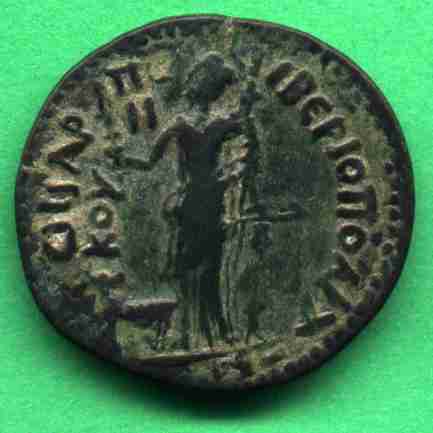 The reverse on this coin resembles those found on many coins from Syracuse. Tiberiopolis * COP -- AE34 Artemis stg. l., stag at feet
