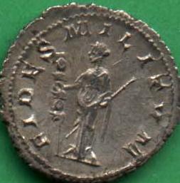 RSC 092, RIC 209 (Antioch) FIDES MILITVM, Fides stg. l., holding two standards